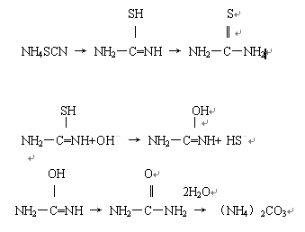 值得注意得是,1.2.4中的副反應(yīng)(2)主要和煤氣中的HCN的含量有關(guān),也與單質(zhì)硫能否及時(shí)分離有關(guān)。使用ZL催化劑,及時(shí)地把單質(zhì)硫分離出去,可減慢NH4SCN的增長(zhǎng)速度;另外,在ZL催化劑的作用下,NH4SCN還可以發(fā)生如下轉(zhuǎn)化反應(yīng):